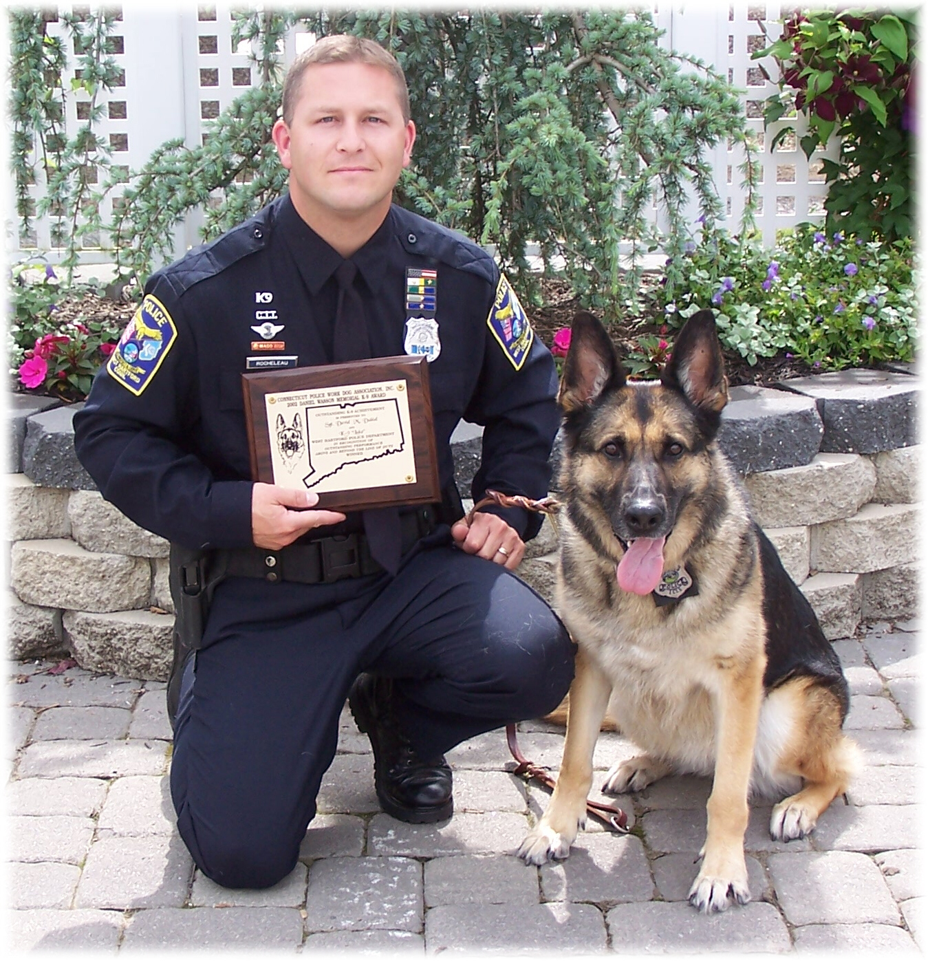 Eric Rocheleau and his K-9 Partner "Kora", of the West Hartford Police Department, as the recipient of the 2005 Daniel Wasson Memorial K-9 Award. This year’s honorable mention recipients are: First runner up, Officer